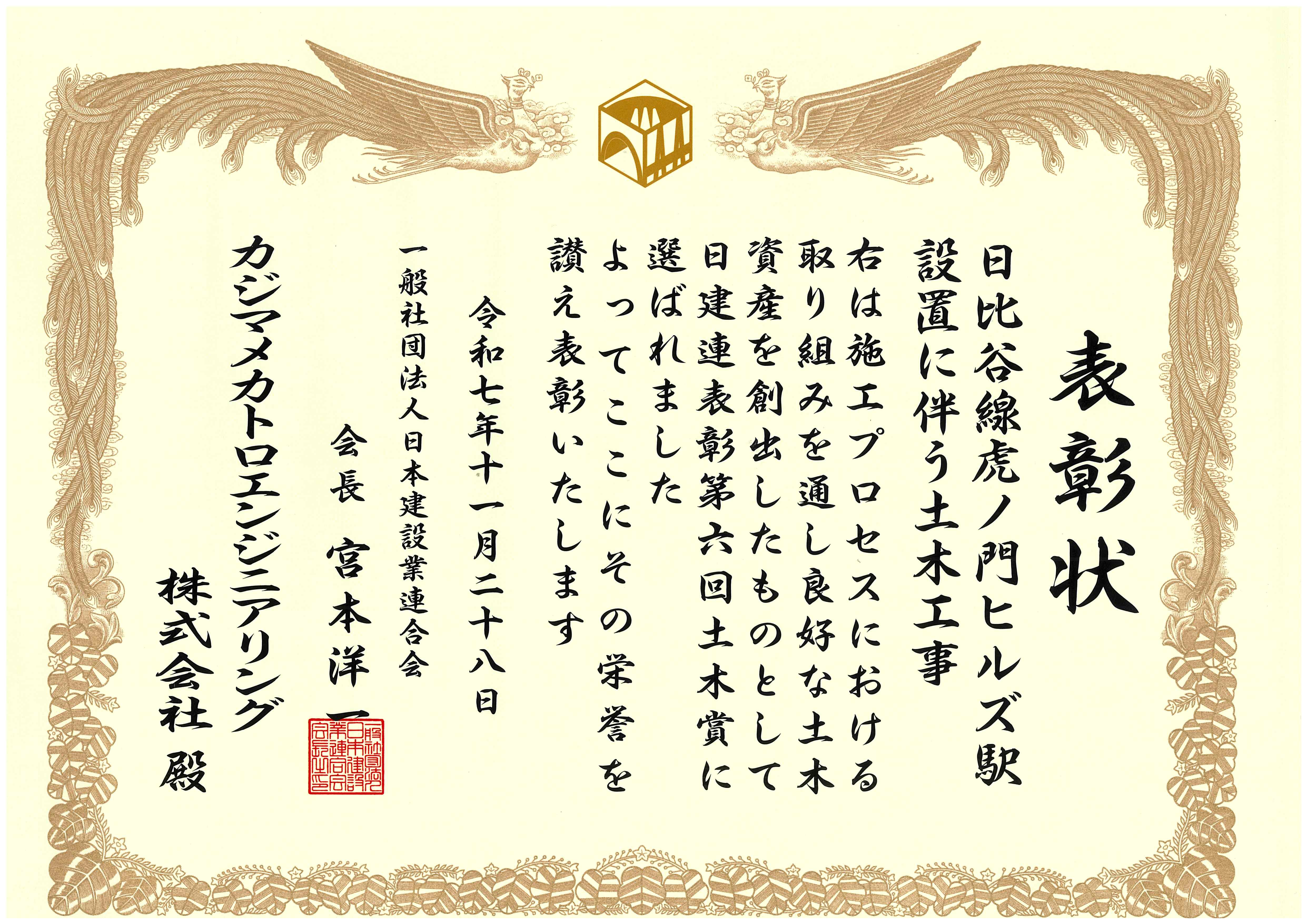 「日建連表彰土木賞」は、社会基盤として国民生活と経済活動を支える土木分野の優れたプロジェクト・構造物を表彰するもので2020年に創設され今回で6回目を迎えます。